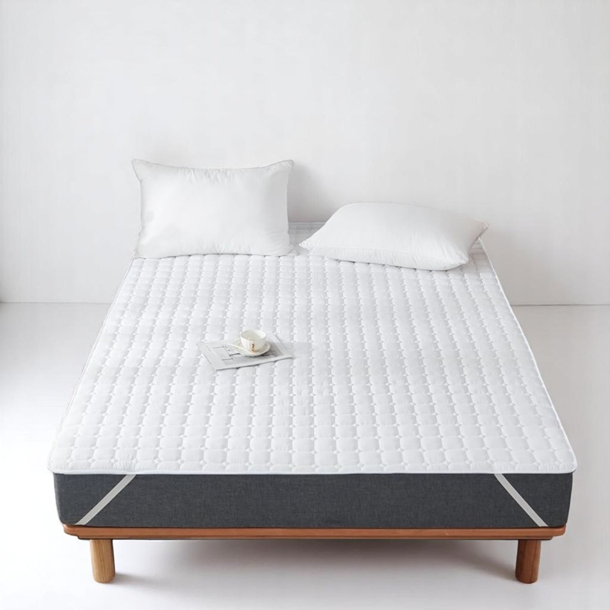 Soft, breathable, and quietly luxurious — the CloudEase Mattress Protector is designed for comfort and care. With a brushed micro-peach outer layer and feather-like microfibre polyester filling, it adds gentle padding while protecting your mattress from dust and wear. Material: Upholstery: Brushed micro-peach Filling: Microfibre polyester Size: 180×200 cm